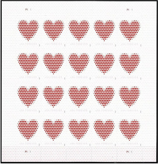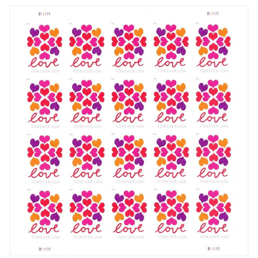 1,000 Forever Stamps - Made of Hearts design in booklets of of 20 x 50: Total of 1,000 Forever Stamps